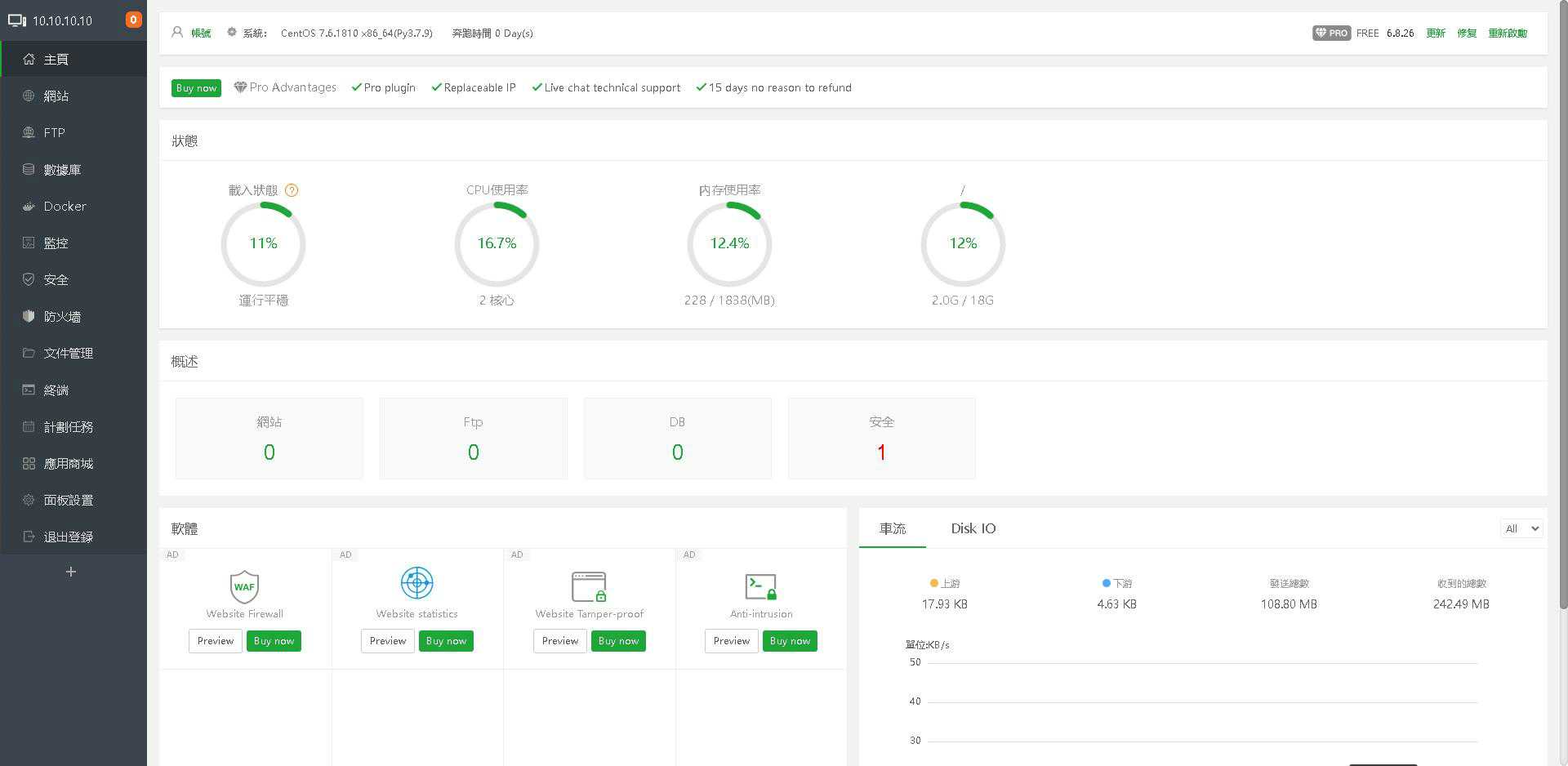 宝塔有部分文本分散写在模板以及面板代码内,因此汉化并不完整。